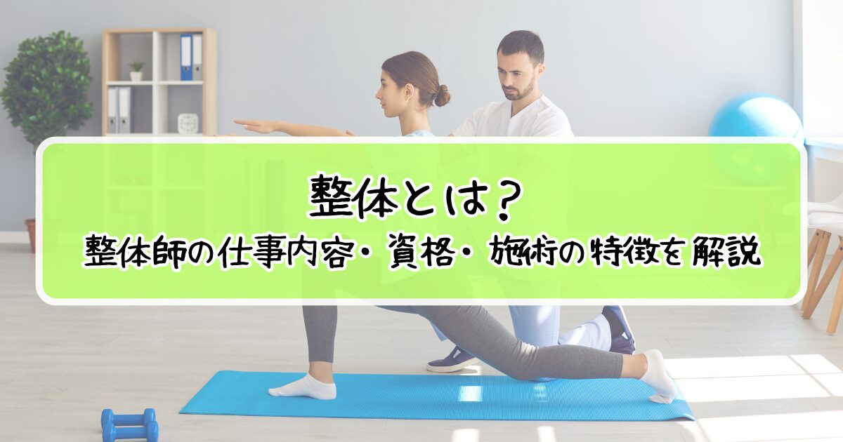 整体とは、体の歪みや筋肉の緊張を整えることで、肩こりや腰痛、姿勢改善などをサポートする施術です。整体師は国家資格が必須ではありませんが、理学療法士や柔道整復師などの資格を持つことで、より安全で効果的な施術が可能になります。