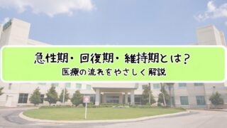 日常生活 「急性期・回復期・維持期」とは?病気の治療から在宅までの流れをわかりやすく解説! 急性期・回復期・維持期とは?それぞれの特徴と医療機関の役割をわかりやすく解説。入院から在宅までの流れを図解で理解し、患者や家族が安心して次のステップに進めるようサポートします。 2025.11.04 日常生活